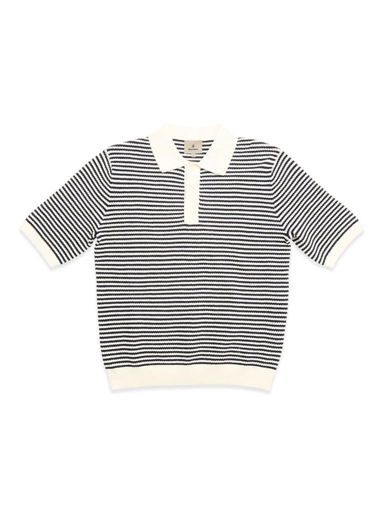 Dieses gestreifte Kurzarm-Poloshirt interpretiert den maritimen Klassiker auf moderne Weise. Gefertigt aus einem atmungsaktiven 7-GG Baumwollstrick, bietet es eine angenehme Balance aus weichem Tragegefühl und strukturierter Optik.